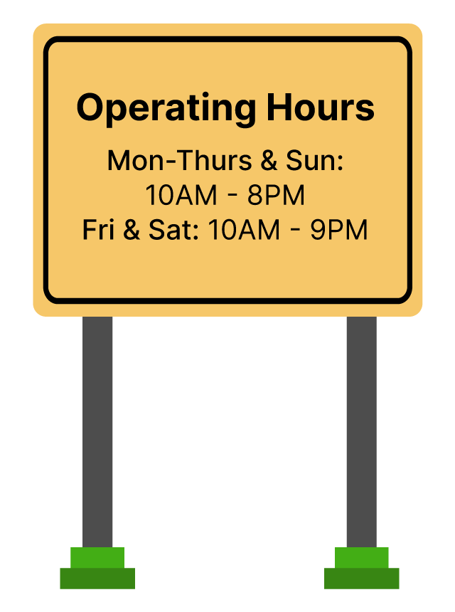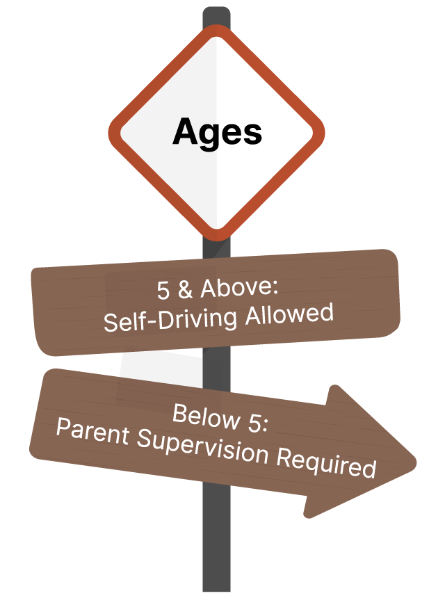 All first-time drivers should book our ‘Learner Pass’ below and undergo our ‘Basic Driving & Road Safety Lesson’. Thereafter, you can have fun driving freely in VroomTown™!