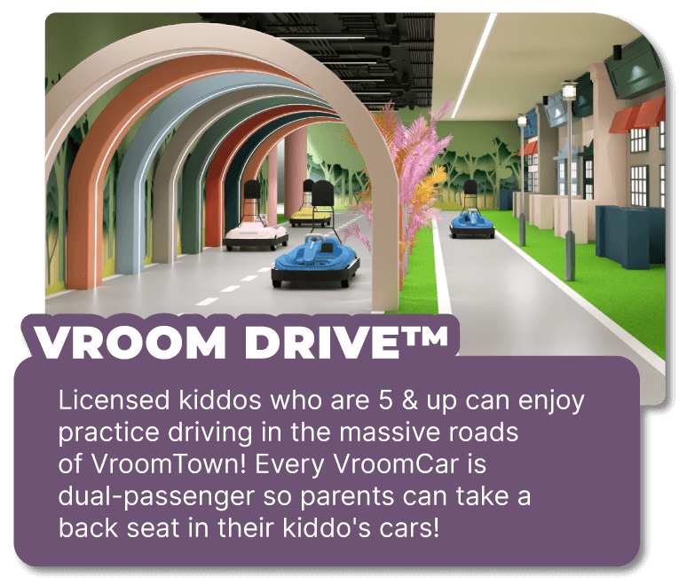 - 1 Child + 1 Parent/Guardian Entry to VroomTown™